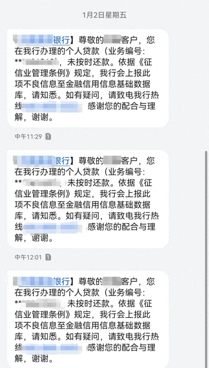 “依据《征信业管理条例》规定,我行会上报此项不良信息至金融信用信息基础数据库,请知悉。”上述短信称。
